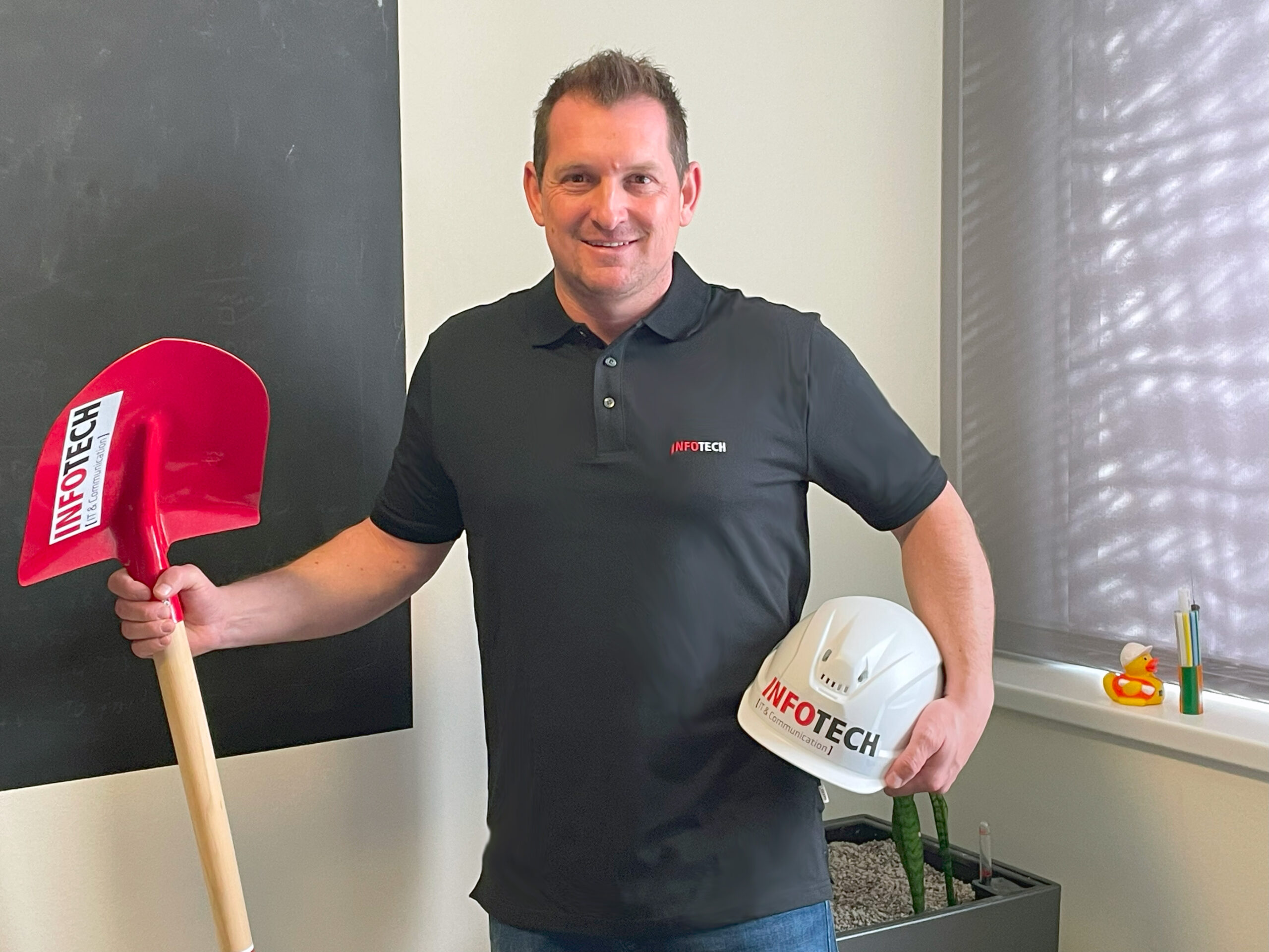 Bildtext: Infotech-Geschäftsführer Stefan Kitzmantl treibt den flächendeckenden Glasfaserausbau in Ried im Innkreis mit voller Leidenschaft voran.